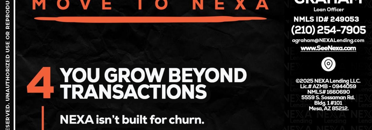 Hi, my name is Adam Graham. I’m a Loan Officer with NEXA Lending LLC., offering personalized mortgage solutions, fast customized quotes, great rates and service with integrity.