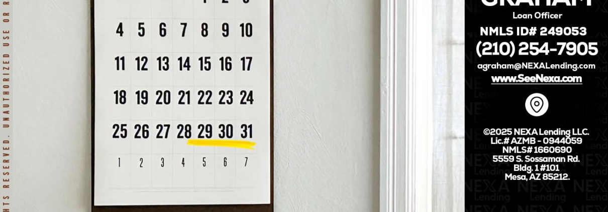 FEBRUARY 29-31 - Adam Graham -Mortgage Loan AdvisorHi, my name is Adam Graham. I’m a Loan Officer with NEXA Lending LLC., offering personalized mortgage solutions, fast customized quotes, great rates and service with integrity.