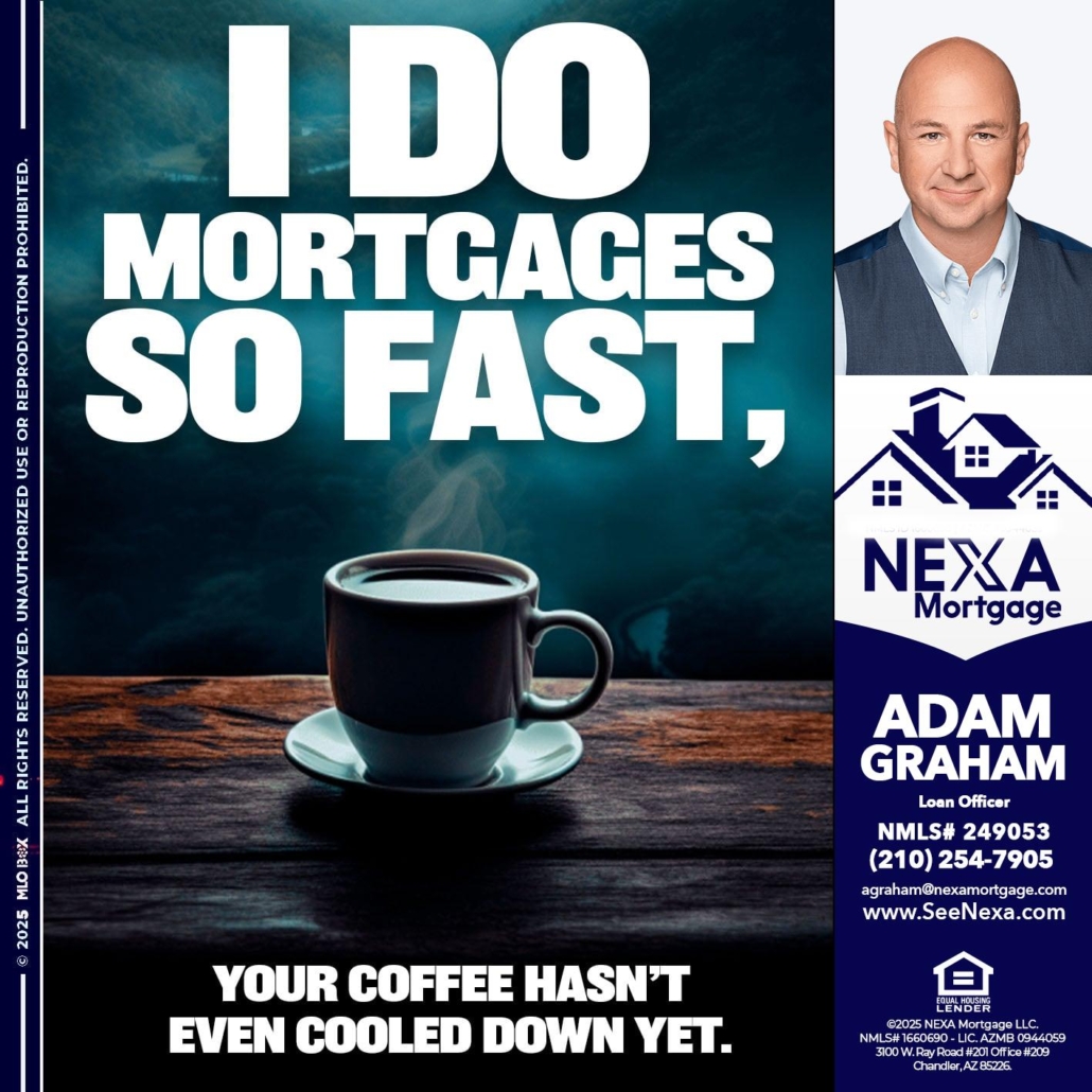 Hi, my name is Adam Graham. I’m a Loan Officer with NEXA Mortgage LLC., offering personalized mortgage solutions, fast customized quotes, great rates and service with integrity.