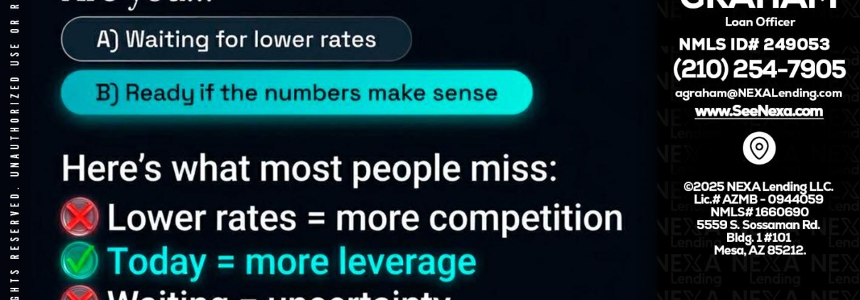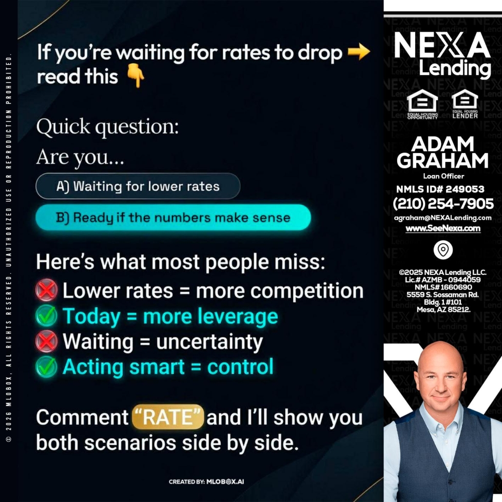Hi, my name is Adam Graham. I’m a Loan Officer with NEXA Lending LLC., offering personalized mortgage solutions, fast customized quotes, great rates and service with integrity.