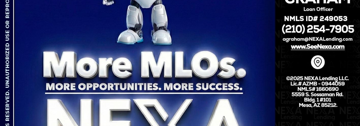 Hi, my name is Adam Graham. I’m a Loan Officer with NEXA Lending LLC., offering personalized mortgage solutions, fast customized quotes, great rates and service with integrity.