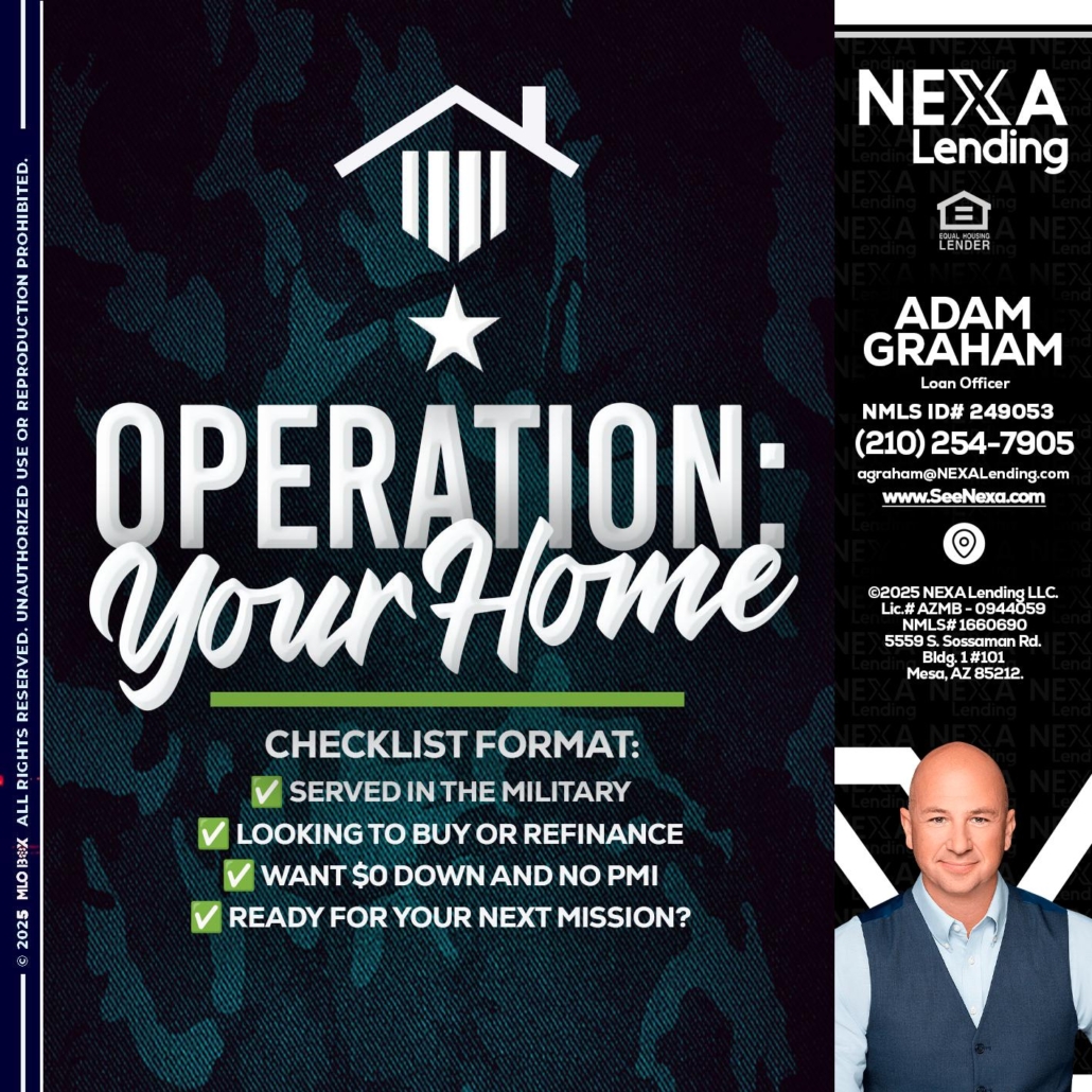Hi, my name is Adam Graham. I’m a Loan Officer with NEXA Mortgage LLC., offering personalized mortgage solutions, fast customized quotes, great rates and service with integrity.