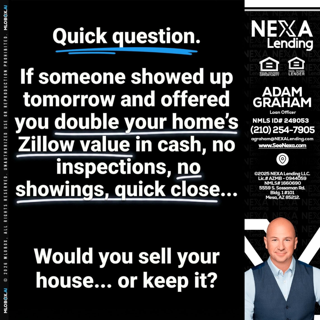 Hi, my name is Adam Graham. I’m a Loan Officer with NEXA Lending LLC., offering personalized mortgage solutions, fast customized quotes, great rates and service with integrity.