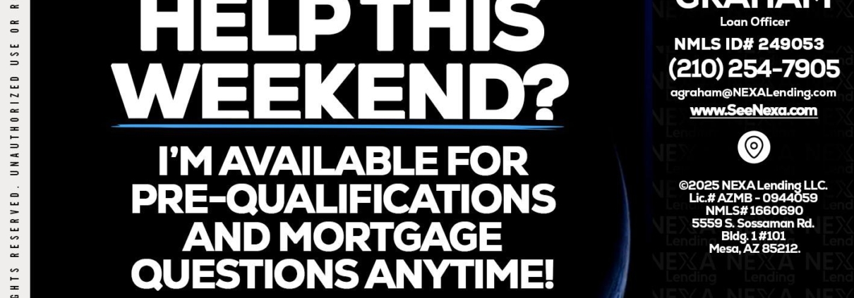 Hi, my name is Adam Graham. I’m a Loan Officer with NEXA Lending LLC., offering personalized mortgage solutions, fast customized quotes, great rates and service with integrity.